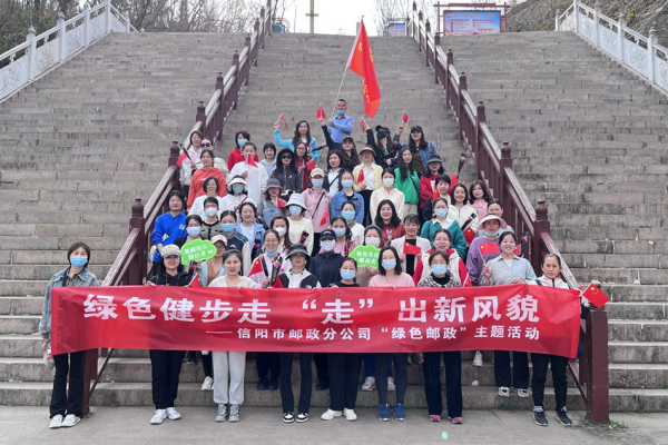 信陽郵政百余名女職工相聚平橋區平山塔,開展“綠色健步走 走出新風貌”主題登山活動,宣傳“綠色郵政”理念,倡導低碳健康生活方式。