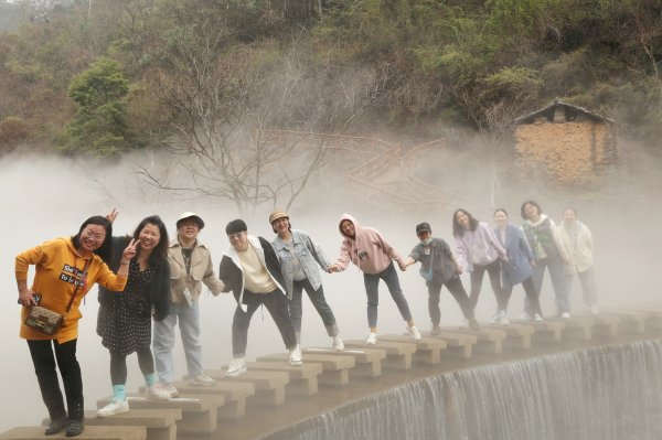 一大早,女職工們輕裝上路,經(jīng)過一個多小時的車程,來到了銅源峽景區(qū)。映入眼簾的是銅源峽自梅嶺洗藥湖綿延而下至幸福水庫,千年不竭,兩岸高山對峙、甚是壯觀。大伙跟隨導(dǎo)游走過玻璃橋來到一處游玩區(qū),放眼望去,景色美如油畫:大片大片的油菜花,隨風(fēng)擺動的秋千,綿綿細(xì)雨白霧籠罩的風(fēng)車,風(fēng)車下的動物飼養(yǎng)區(qū)有小鹿、小馬和一群活碰亂跳的小白兔。大家紛紛拿起手機或自拍、或合影留念,還夾雜著一片片銀鈴的笑聲。再往里走,峽谷幽然而蜿蜒、奇石錯落而有致、飛瀑不斷而唯美。走過水礁房,那揚起的香塵,象一陣輕煙久久不散,又平添了幾分詩情畫意,失神間好似置身于仙劍奇?zhèn)b般幻境。三月的下雨淅淅瀝瀝,微風(fēng)拂過大家的臉龐,疲憊和煩惱被一掃而光。愉快的時光總是稍縱即逝。女職工們在享用了農(nóng)家小灶的午飯后,踏上了歸程。