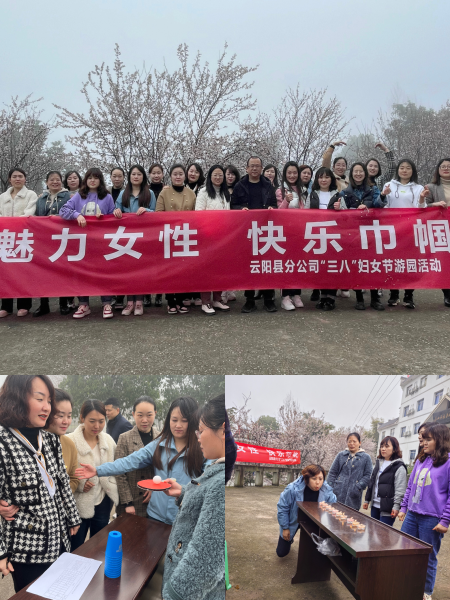 3月7日,云陽縣分公司工會組織機關女職工前往人和仙女洞開展“魅力女性 快樂巾幗”三八節游園活動?;顒又校餍〗M成員同心協力,在“吹蠟燭、左右開工、踢拖鞋挑戰”等游園活動項目中,大顯身手,盡展風采,將整個活動推向高潮。