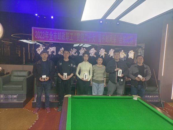 本次比賽分為預賽、半決賽、決賽,選手們全身心投入,充分展現拼搏精神,展示高超球技,架桿、出桿、擊球、落袋,一系列精湛的臺球技術令比賽精彩紛呈,贏得在場觀賽人員的陣陣掌聲和喝彩聲,體現出郵政職工的良好精神面貌。經過緊張激烈的比拼,富拉爾基區分公司戴輝獲得冠軍,鐵鋒區分公司何爽獲得亞軍,服務質量部關鋒獲得季軍,市分公司工會副主席王新紅為獲獎選手頒獎,并鼓勵大賽要以賽場上的拼搏精神為動力,以健康體魄和飽滿的精神狀態投入到各項工作中,推動各項工作全方位高質量發展。參賽單位和職工紛紛表示,此次臺球比賽為廣大職工提供了以賽會友的平臺,大家在收獲成績同時,也收獲了快樂,更激發了廣大職工團結奮進、頑強拼搏的優良作風。