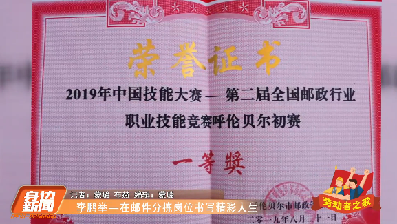 5月8日,呼倫貝爾市廣播電視臺《勞動者之歌》專欄以《李鵬舉—在郵件分揀崗位書寫精彩人生》為題,在全市觀眾面前展示了中國郵政集團(tuán)有點公司呼倫貝爾市分公司分揀員李鵬舉的先進(jìn)事跡,時長4分47秒,引起了強(qiáng)烈反響。