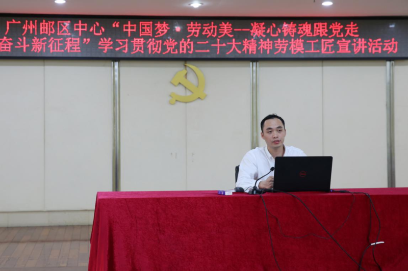 為營造“學習勞模、關愛勞模、崇尚勞模、爭當勞模”的良好氛圍,引導帶動廣大員工愛崗敬業,主動增強企業主人翁精神,廣州郵區中心組織開展了“中國夢·勞動美——凝心鑄魂跟黨走 團結奮斗新征程”勞模工匠宣講活動,讓勞模走上講臺,分享成長歷程。