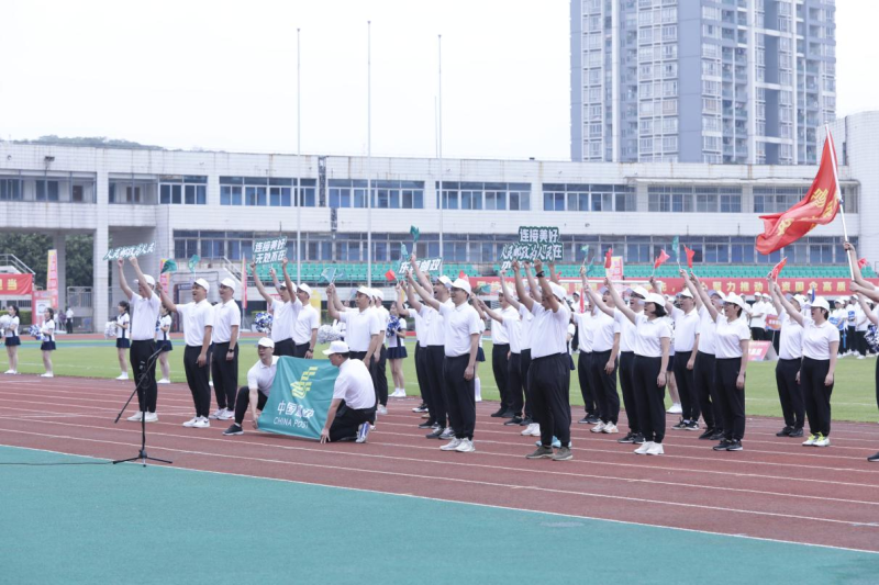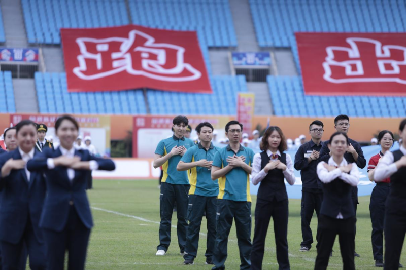 開幕式上燃料煙花瞬間綻放,運動會在現場一片歡呼聲中正式拉開帷幕。來自各企業的員工代表為現場觀眾送上了絕美的視聽盛宴:朝氣與活力的快閃舞蹈《我們都是追夢人》、驚心動魄的是軍體拳《國資雄風》、極具特色的企業風采展示《出發吧!春天》……整場文藝匯演精彩紛呈,高潮迭起。東莞市分公司員工代表為了這次開幕表演,常常利用下班時間集中排練,“能參與到燃爆全場的開幕式表演中,我們覺得付出的一切都很值得!”