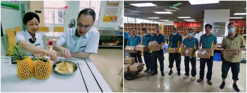 “來一口清香的菠蘿,讓你的夏天更加美味”。5月正是菠蘿成熟時,廣州市分公司響應省公司幫扶鄉(xiāng)村振興、強力推進農產品基地建設的號召,為員工們發(fā)放了約25000斤“徐聞菠蘿”,用帶著陽光味道的新鮮時令水果感謝在不同崗位上奮力拼搏的郵政人。