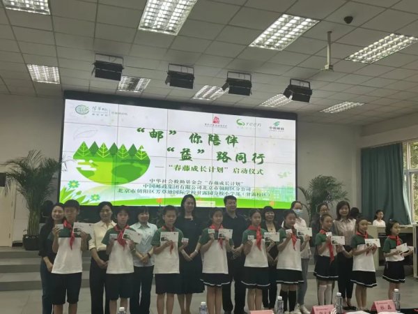 5月25日,中華社會救助基金會“春藤成長計劃”項目聯合中國郵政集團有限公司北京市朝陽區分公司,以及北京市朝陽區芳草地國際學校甘露園分校啟動“‘郵’你陪伴 ‘益’路同行 碳減排·愛循環”校園活動。