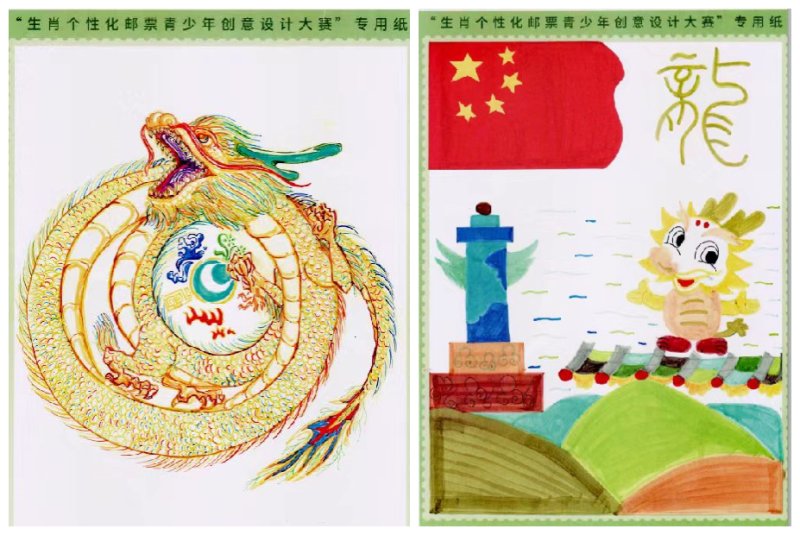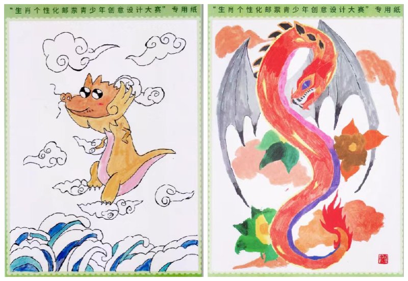 左:《好運龍》(作者:霍禹希 家長:黃紅梅) 右:《龍之華夏》(作者:凌梓源 家長:魏雷)