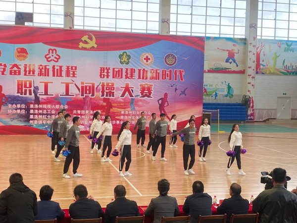 6月13日,果洛州分公司工會組織職工代表州金融系統參加由州殘聯主辦,州總工會、團州委、州婦聯、州紅十字會、州科協、州文體旅游廣電局、州民領辦協辦的果洛州“跟黨奮進新征程 群團建功新時代”全州職工工間操大賽。