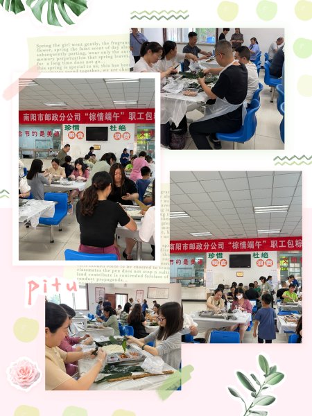 6月20日下午,南陽市郵政分公司在職工餐廳舉辦了包粽子活動,大家共聚一堂互贈祝福,并將自己親手包的粽子送給基層一線的職工品嘗。通過此次活動讓職工們鍛煉了動手能力、學習能力,也充分體會到了團隊協作,共同勞動的樂趣。(河南省郵政工會)
