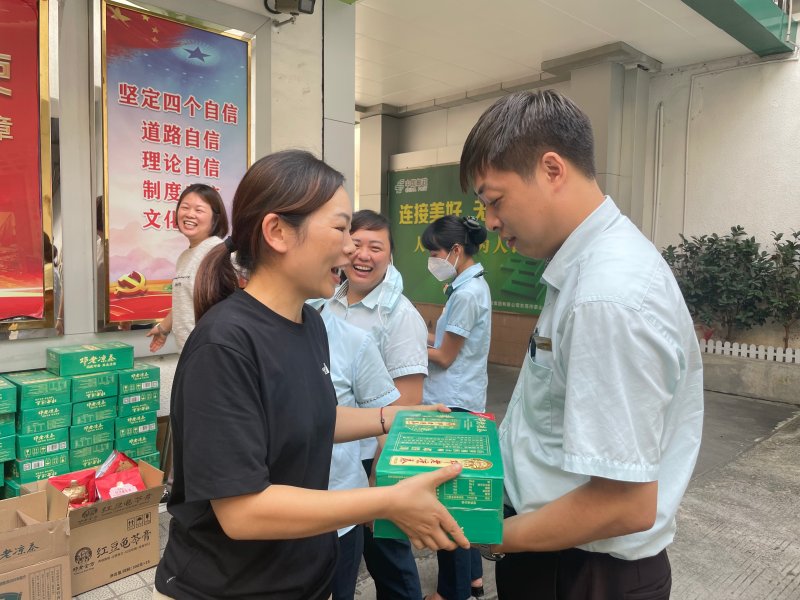 一箱箱清涼飲料、一包包涼茶沖劑、一袋袋紅豆龜苓膏、冰鎮的大西瓜、解暑的糖水、防暑降溫的藥品……員工們收獲的是深情關懷,他們紛紛表示:工會的慰問來得太及時了!各級工會代表在慰問時,不忘詢問員工的工作情況和身體狀態,反復叮囑投遞員、營銷員在戶外工作時要注意防暑降溫。每一份關心每一句叮嚀,都是對員工的尊重和關懷。