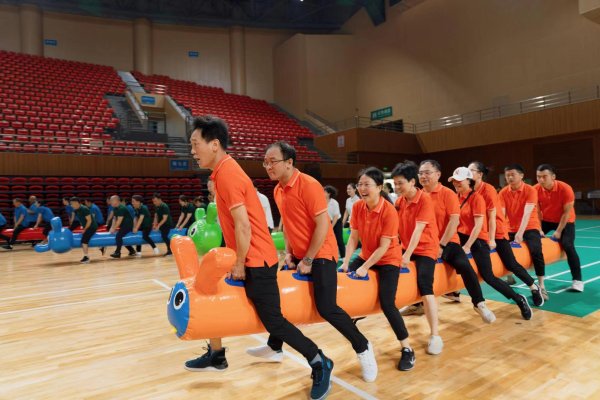 趣味健身運(yùn)動(dòng)會(huì)不同于傳統(tǒng)運(yùn)動(dòng)會(huì),比賽項(xiàng)目參與門檻低,體現(xiàn)重在參與;項(xiàng)目設(shè)計(jì)互動(dòng)熱鬧,體現(xiàn)重在趣味。運(yùn)動(dòng)會(huì)吸引了市本100余名員工參加。活動(dòng)通過(guò)抽簽方式,將若干個(gè)團(tuán)隊(duì)分成ABC三個(gè)大組。各團(tuán)隊(duì)依次完成旱地龍舟、無(wú)敵風(fēng)火輪、車輪滾滾、多向拔河四項(xiàng)團(tuán)體合作游戲。團(tuán)隊(duì)中,部門經(jīng)理、機(jī)關(guān)管理人員、技術(shù)員、營(yíng)銷員紛紛上陣。有的負(fù)責(zé)組織協(xié)調(diào),有的負(fù)責(zé)布局布陣,有的負(fù)責(zé)落實(shí)執(zhí)行,有的負(fù)責(zé)后勤保障。大家群策群力、齊心協(xié)力,高質(zhì)量、高標(biāo)準(zhǔn)地完成每一個(gè)競(jìng)賽項(xiàng)目,把比賽一次次推向更高的熱潮。