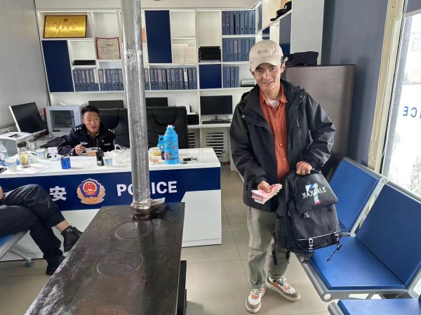 在檢查過程中發現包內有一張銀行卡、一張社會保險卡、現金3400元整,以及部分衣物、洗漱用品、充電寶等物品,并沒有發現失主聯系信息。桑布同志隨即向阿里地區郵政分公司報告此事,并詢問應該如何處理該旅行包,被告知送交就近公安機構。中午約2:00左右兩人到達改則縣城,將該旅行包交給就近警務站,求助民警尋找失主。經過公安民警全力尋找,最終尋到失主,并失物已物歸原主。