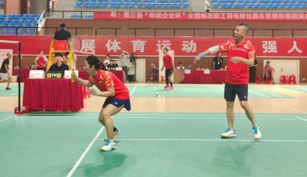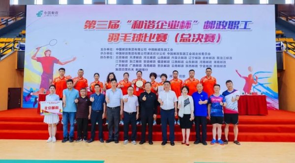 7月13日,由中國郵政集團有限公司、中國郵政集團工會主辦,湖北省郵政分公司、湖北省郵政工會承辦的第三屆“和諧企業杯”郵政職工羽毛球比賽(總決賽)在湖北恩施州宣恩縣全民健身公園體育館圓滿落幕。 來自豐臺區分公司、石景山區分公司、郵區中心、商函中心、培訓中心、新聞中心6個單位9名隊員代表北京郵政參賽,角逐團體決賽以及女單、男雙2個單項決賽。