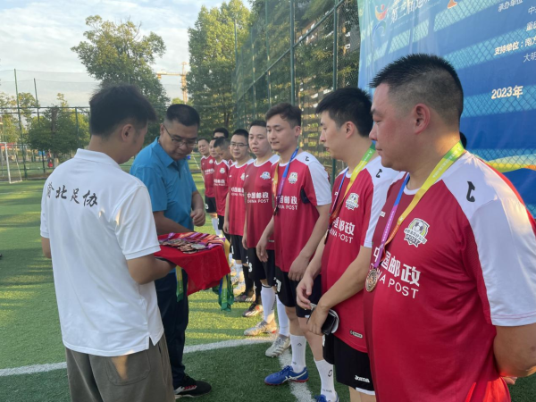 為進一步豐富職工業余體育文化生活,營造“務實進取,奮勇爭先”的良好氛圍,渝北郵政工會組織14名足球運動員參加渝北區第三屆運動會其他組足球比賽,渝北郵政代表隊不負眾望,在全市12支參賽代表隊中,脫穎而出,經過半決賽進入決賽,在最后一場3:2獲勝,涉險過關躋身上位,獲得季軍。