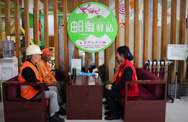 “平時起得早,遇到雨雪天,沒有地方待,幸好咱們郵政公司建了這個幸福驛站,對于我們這些環衛工,不管熱天、冷天,都有關心和照顧,俺們表示感謝!”宿州市區淮海路的環衛工人劉大姐一邊在驛站的茶歇處坐著休息,一邊和驛站的志愿服務人員聊著。