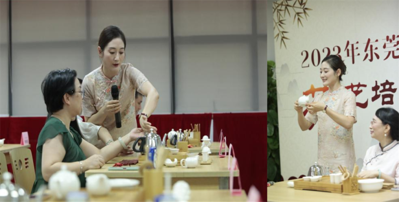 與此同時,東莞郵政機關工會安排了茶藝表演和實操環節。從列具、潔具到賞茶、潤茶再到沖泡、奉茶,老師熟練且細致的教學,深深吸引著大家。當大家親自完成一系列“鳳凰三點頭”“翻江倒?!钡葘I茶藝動作,更充分體會到了茶藝帶來的優雅質樸的氣質和恬淡愉悅的心境。