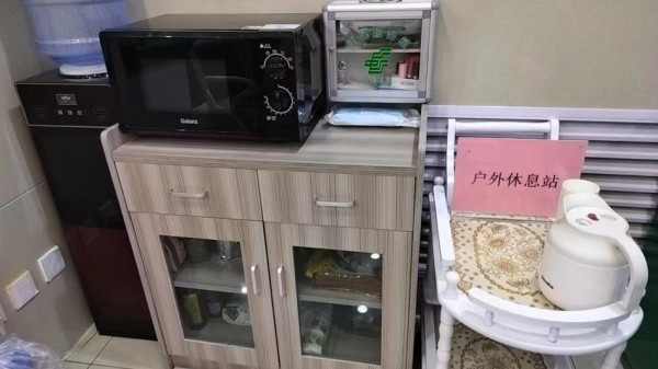 新建“郵愛驛站”配備了桌椅、飲水機、微波爐、應急藥品、充電寶等設備和工具,能提供包括休息、手機充電、飲水、雨傘、應急外敷藥品以及飯菜加熱等服務,并安排有專人負責日常管理和維護工作。