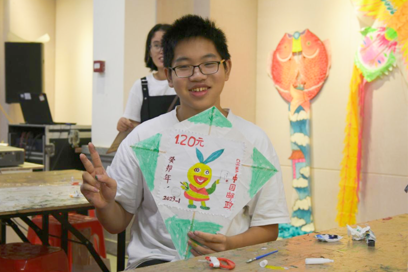 隨后,孩子們迫不及待地開(kāi)始動(dòng)手制作屬于自已的風(fēng)箏,他們不僅在風(fēng)箏上繪制了美麗的圖案,還巧妙地將風(fēng)箏文化和郵票文化相融合,用彩筆勾勒出十二生肖等郵票元素,獨(dú)具特色與新鮮感。