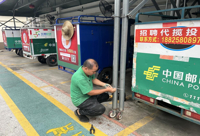 為應對臺風,東莞郵政各工會高度重視,迅速反應,早謀劃早部署,嚴陣以待,落實24小時值班制,啟動防汛措施,做好應急搶險準備,并持續密切關注天氣滾動預報和受災情況,全力保障生產安全有序進行。9月6日,各工會應急小組為基層班組配備沙袋、遮雨布等防汛物資,各網點提前布放防汛沙袋,各工會提前做好雨棚加固,大力做好保障措施。擔心汛情突發,多少人不眠不休,連續奮戰,風雨中堅守。