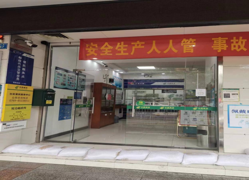 東莞郵政其他工會也都紛紛加強值守,隨時做好防汛應急準備,確保生產平穩運行。截止9月8日,除塘廈5個金融網點、虎門大道網點共6個金融網點因洪水問題停業外,各網點營業正常,未發生較大安全事故及財產損失。