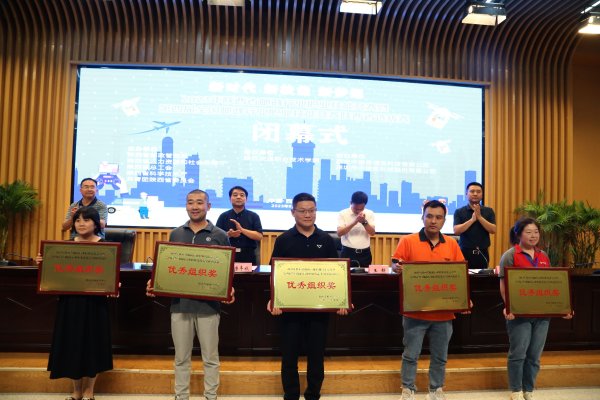 圖中左一為運營中心指導老師侯導玲上臺領取優秀組織獎