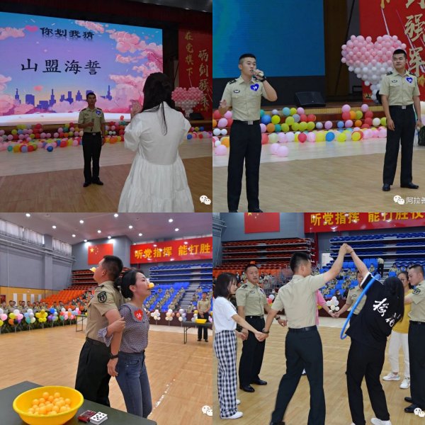 活動現場,歡聲洋溢、熱鬧非凡。軍地男女青年通過歡樂有趣的游戲互動,別出心裁的才藝展示,浪漫心動的真情告白等環節,不斷增進相互間的了解,拉近彼此間心靈的距離,現場氣氛歡快而浪漫,鐵血與柔情交相輝映。活動期間,還結伴觀看了軍史長廊,欣賞了《扎根大漠 礪劍強軍》和《蒼天般的阿拉善》等宣傳短片,進一步加深女青年對部隊和官兵的了解,增強對軍人職業的認同感,激發軍屬的榮譽感和自豪感。