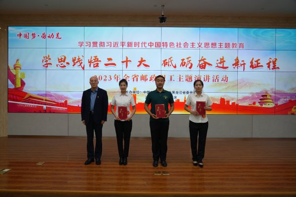 2023年9月26日,為學習宣傳貫徹黨的二十大精神,迎接中國工會十八大的召開,黑龍江省郵政工會在哈爾濱舉辦了2023年全省郵政職工“中國夢·勞動美——學思踐悟二十大 砥礪奮進新征程”主題演講比賽活動。全省各級郵政工會高度重視、精心組織,經過層層選拔,來自全省郵政14個代表隊的26位演講選手參加了黨的二十大知識現場問答,展開了激情澎湃的演講角逐。經過評選,3名職工榮獲一等獎、5名職工榮獲二等獎、8名職工榮獲三等獎、10名職工榮獲優秀獎。省郵政工會評選出哈爾濱、牡丹江、大慶、雞西、伊春、大興安嶺地區、省分公司機關工會7個郵政工會為優秀組織獎。同時,省郵政工會將在“黑龍江郵政”公眾號上擇優展播獲獎選手演講視頻。