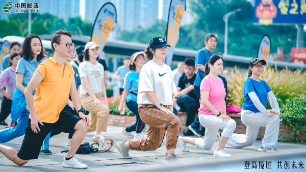 “大家伸伸手,彎彎腰,壓壓腿。”9:30,在健身教練帶領(lǐng)下,來自省分公司、郵儲銀行省分行機(jī)關(guān)的350多名員工,一起做起了熱身操,場面蔚為壯觀。