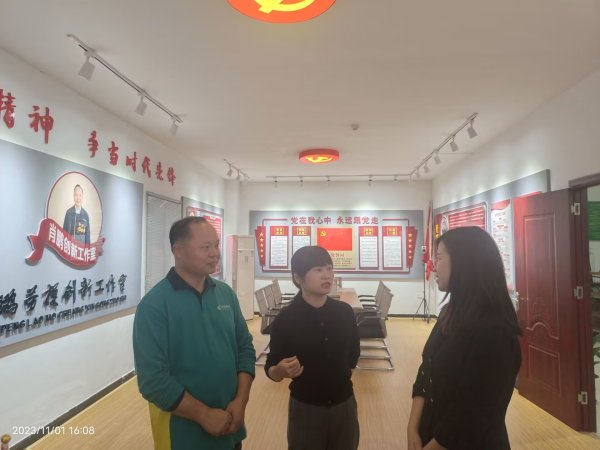 11月1日下午,萍鄉市總工會副主席陳益敏帶領市總工會經濟技術工作部部長彭磊、網絡宣教部部長黎陽一行,來到萍鄉市安源區分公司肖鵬勞模創新工作室走訪調研,市郵政工會副主席謝巧誼陪同。