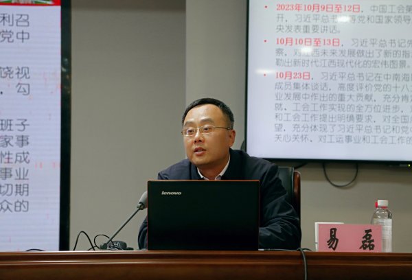 報告會邀請到江西省委黨校群團理論教研部高級講師易磊授課,他以《學習中國工會十八大精神,譜寫新時代新征程工會工作新篇章》為主題,對中國工會十八大精神進行了詳細梳理,授課脈路清晰,化繁為簡,重點突出,層次分明,對全省郵政專兼職工會干部進一步深入理解把握中國工會十八大要求,掌握當前工會工作面臨的形勢任務(wù),明確未來工會工作的思路設(shè)想很有指導(dǎo)意義。
