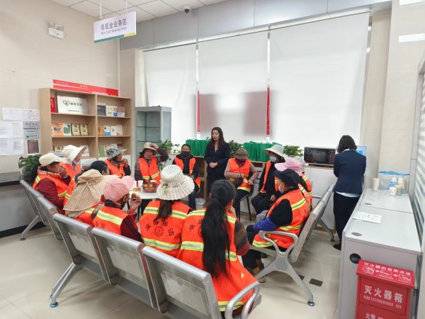 陸良縣郵政分公司工會主席、副總經理耐心地為她們講解我們工會戶外勞動者服務站的功能,告訴她們這里設置了休息服務區,并配有桌椅、報刊雜志、微波爐、飲水機、應急藥箱、雨傘、維修工具箱、無線網絡、手機充電等服務。當工作累了、天冷了、渴了的時候,可以把這里當成“一個路上的家”進來歇一歇,坐一坐,同時可以相互傳達,讓更多的人知曉,把我們的服務站充分的用起來、活起來,為來自各行各業的戶外勞動者提供一個“冷可取暖、熱可納涼、累可歇腳”的休憩港灣。