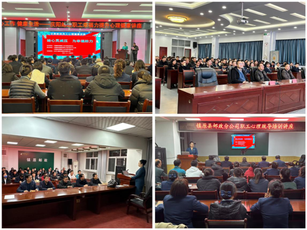 為深入推進集團工會關于開展“送溫暖、送健康”服務工作要求,提升職工心理健康素養和心理健康知識知曉率,慶陽市郵政工會在省郵政工會的統籌安排下,于12月6日和7日晚分別在慶陽市分公司、西峰區分公司和鎮原縣分公司舉辦了兩場送健康系列心理健康服務講座活動,共有160余名郵政職工參加活動。講座活動邀請了甘肅郵政心理服務項目首席專家、蘭州力道咨詢服務有限公司總經理周志玲作專題講座,周志玲老師圍繞如何做好心理疏導和情緒管理,分析了在日常工作生活中心理壓力產生的根源和各種因素,講授了自我識別、調適壓力及確保心理健康的渠道和方法。通過互動和情景演示,將家庭婚姻關系、親子教育、從多個角度深度解析影響人生幸福力的成因以及緩解對策。周志玲老師的授課語言生動風趣,通俗易懂,互動環節趣味橫生,現場氛圍輕松熱烈,大家聽得津津有味,受益匪淺。最后,工會主席朱軍鋒作了總結講話。他指出,開展職工心理健康講座,是工會堅持以職工為中心,加快規范職工服務中心建設,努力構建“幫扶、維權、服務”三位一體服務體系的重要舉措,通過服務講座向職工普及心理健康知識,不斷提高職工生活品質,增強廣大職工的獲得感、幸福感和安全感。今后,還將繼續開展心理健康服務講座活動,為更多職工提供心理健康幫助。