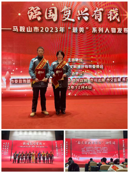12月4日,由市精神文明建設指導委員會主辦,市委宣傳部、市委組織部、市文明辦、市民政局、市司法局、市交運局、市廣電臺共同承辦的強國復興有我——馬鞍山市2023年“最美”系列表彰儀式在市會議中心第二會堂成功舉行。市分公司 陳剛和劉巧紅兩名員工榮獲“最美快遞員”稱號。
