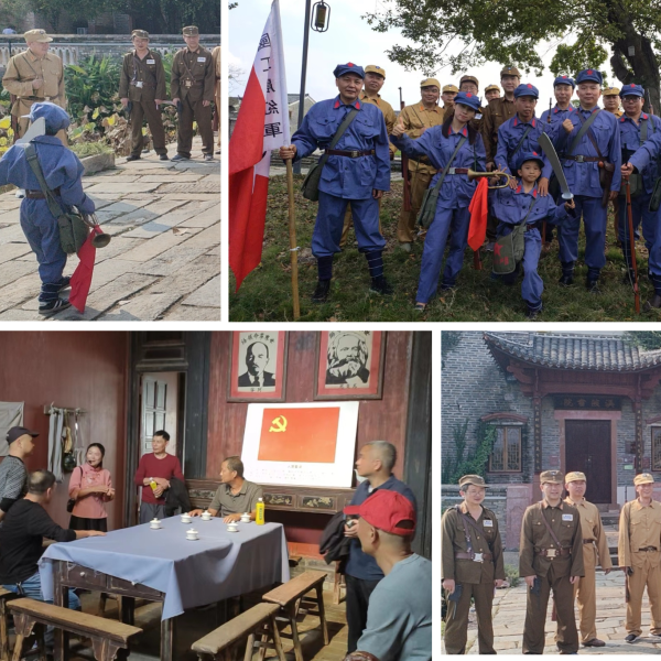 在吉安,宜春郵政員工游覽了集佛教文化、名人文化和秀麗風(fēng)景于一身的江西文化名山—青原山,領(lǐng)略了被南宋著名詩(shī)人楊萬(wàn)里譽(yù)為“山川第一江西景”的秀美風(fēng)光。游覽青原山,員工們發(fā)掘文化底蘊(yùn),接力歷史榮光,增進(jìn)了對(duì)廬陵文化尤其是陽(yáng)明心學(xué)的認(rèn)知。在渼陂古村景區(qū),員工們化身“戲精”,投入到《井岡山保衛(wèi)戰(zhàn)之保衛(wèi)渼陂》電影的拍攝。員工們換上角色服裝,變身司令、參謀、排長(zhǎng)、伙夫。雖說(shuō)有專業(yè)導(dǎo)演的指導(dǎo),但是臺(tái)詞的腔調(diào)、表情的拿捏、表演的火候,無(wú)不考驗(yàn)著這群表演“小白”,搞笑場(chǎng)景不時(shí)出現(xiàn),正派反派笑作一團(tuán)。大家歡快地體驗(yàn)了一把“我就是演員”真人秀,拍攝了專屬于自己的微電影。