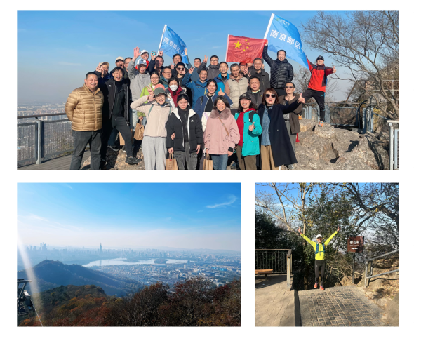 一聲發令號,從櫻駝村登山口出發,走在石條臺階上,茂密的林間山道讓人愉悅。員工們意氣風發、疾步向前、健步如飛,紫金山頭陀嶺主嶺,海拔443米,到達山頂公園,呈現在眼前的是一片五彩秋色的紫金山。