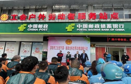 12月14日,由湖南省總工會、湖南省職工幫扶基金會主辦,邵陽市總工會承辦的“工會進萬家·新就業形態勞動者溫暖行動”大禮包發放儀式在邵陽市郵政戴家坪營業所工會戶外勞動者服務站舉行,市人大常委會副主任、市總工會主席羅玉梅,邵陽市郵政分公司黨委書記、總經理姜正科出席活動。