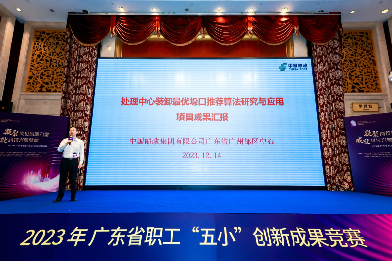 12月14-15日,由廣東省總工會舉辦的“凝聚崗位創新力量,成就科技興粵夢想”2023年廣東省職工“五小”創新成果競賽決賽圓滿結束。在全省2千多個參賽項目中,廣州郵區中心汪磊創新工作室研究的“處理中心裝卸最優垛口推薦算法研究與應用”項目脫穎而出,成為廣東郵政唯一一個入圍決賽的項目,并榮獲本次創新大賽創新成果獎。
