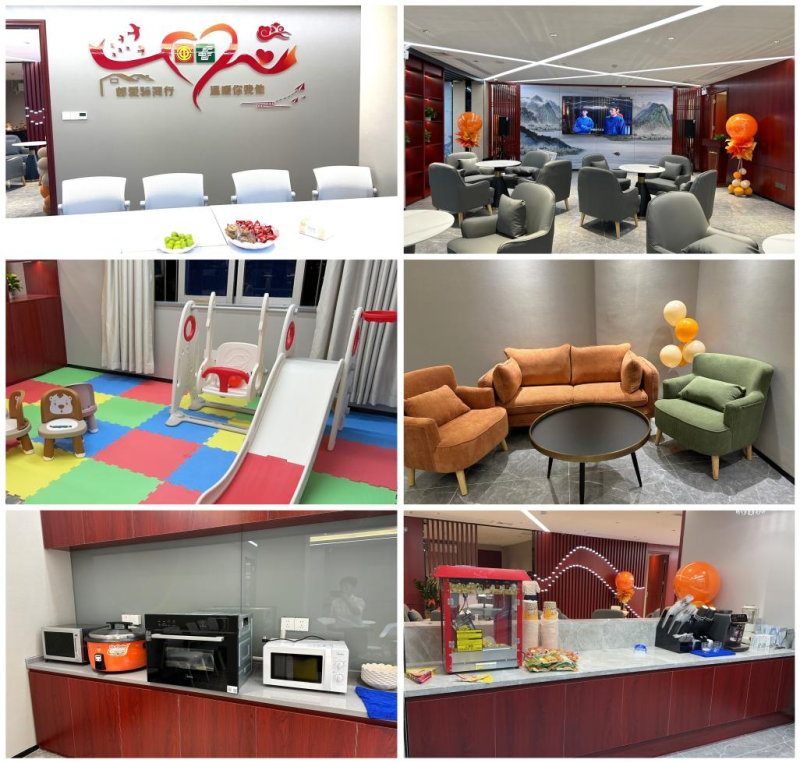 此外,漠江、東城財(cái)富中心電視、冰箱、微波爐、電飯鍋、消毒柜、咖啡機(jī)、制冰機(jī)、破壁機(jī)、兒童滑梯、沙發(fā)休閑椅等設(shè)施設(shè)備一應(yīng)俱全,在這里,不僅可以讓員工用餐休憩、開會學(xué)習(xí),讓工會小組開展烘培聯(lián)誼、親子活動,更可以邀請客戶洽談商務(wù)、品茶會友……