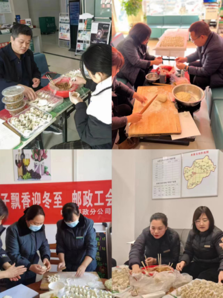 冬至暖意濃,共話郵政情。12月22日,是24節氣中的冬至,為讓奮戰在一線的員工能吃上熱乎乎的餃子,平頂山市郵政工會組織各分公司工會開展了冬至送溫暖活動。一是組織各單位機關全體包聯人員,帶著職工食堂事先準備好的餃子餡、餃子皮,分赴支局,現場為奮戰在旺季生產一線的員工包餃子。二是組織郵件處理中心攬投員、分揀員在職工食堂包餃子。雖然每個人包餃子的熟練程度和手法各不相同,但奉獻愛心、助力旺季發展的行動是一致的。中午時分,一線員工圍坐在一起,吃著熱乎乎的餃子,心里暖意融融。他們感受到了郵政大家庭溫暖,紛紛表示,將不負期望,在金融、寄遞跨年營銷戰役中,克難攻堅,勇爭一流,圓滿完成各項目標計劃,奪取首季開門紅!(河南省郵政工會)