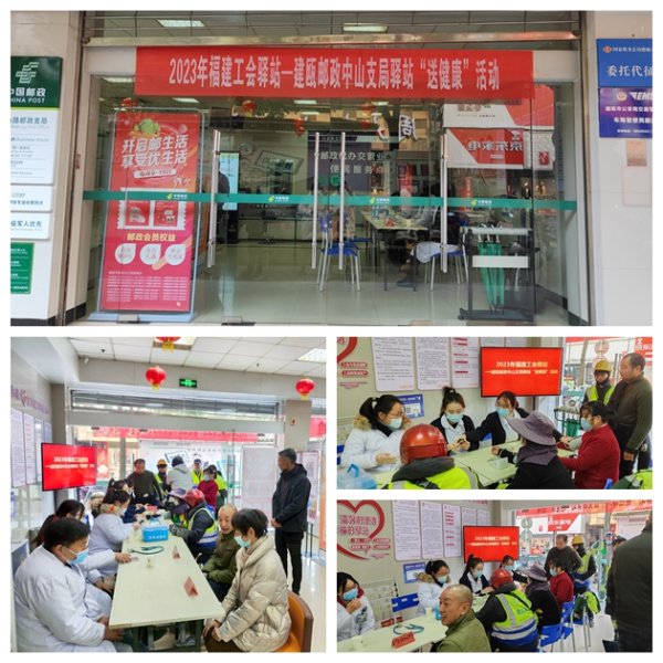 原來,12月22日冬至氣節之日,建甌郵政工會聯合市總工會在中山支局郵愛驛站,開展以“冬至送健康”為主題的溫暖服務季關愛活動,邀請了市立醫院數名內分泌科、消化科醫生為戶外勞動者進行健康義診,現場醫務人員為50余名各行業戶外勞動者測量血壓、血糖等,普及冬季多發流感預防常識、解答如何緩解繁忙工作帶來的心理壓力。郵政工作人員積極引導戶外勞動者領取郵政派送的意外保險……活動現場顯現出一派充滿愛心溫暖動人的景象。