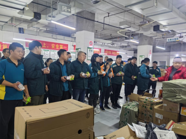 在此之際,南岸郵政工會組織開展關愛攬投員“暖蜂行動”慰問活動,關愛生產一線堅守工作崗位的職工,認真了解了員工們的生產生活需求,為每位員工送上方便面、面包、牛奶、八寶粥,員工名紛紛表示感受到了企業的暖心幫助,將用最佳的狀態熱情投身旺季生產,為郵政企業的發展貢獻力量。