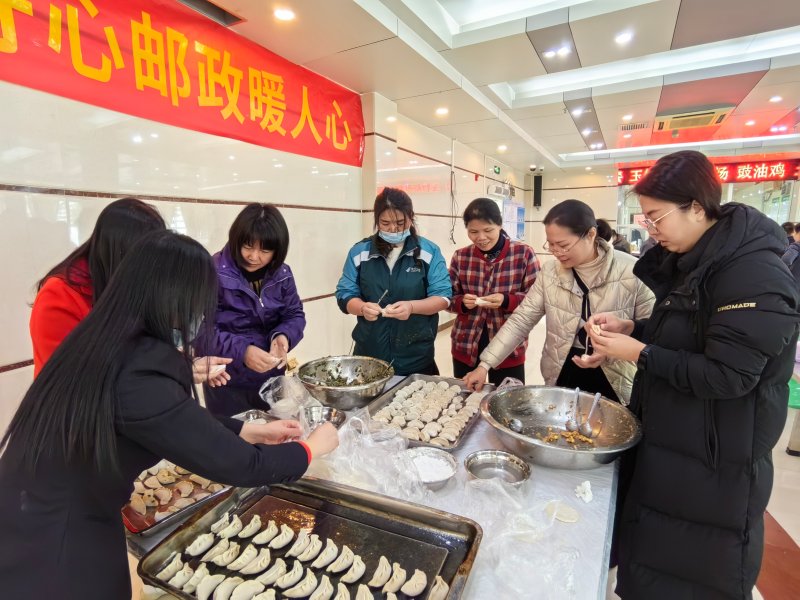 東莞郵政各級工會則開展了“熱乎的餃子,熱乎的湯圓,暖暖的心”專題活動——機關財務部組織員工圍坐包餃子,盡管氣溫很低,包餃子的材料很冰,手很冷,但是大家樂在其中;長安工會把包好且親自煮好的餃子送到每一位營業員、理財經理、投遞員手上,與一線員工共享節日的溫馨;茶山工會特意在飯堂為準備了應節湯圓,祝福廣大員工冬至歡愉,常安常樂……