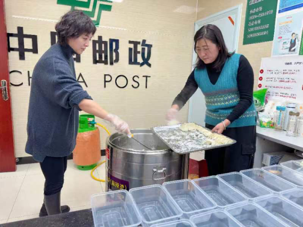 金昌市分公司工會組織員工開展“情暖冬至,水餃飄香”包餃子活動,市、區分公司部室機關人員與食堂人員一起包餃子。大家各顯身手,互相交流包餃子經驗、暢談工作和生活趣事,現場氣氛溫馨熱鬧。隨著蒸汽不斷上涌,一盒盒餃子出鍋,市分公司組織車輛為7個網點、7個攬投班及郵件處理中心在崗位員送去餃子,員工們吃著香噴噴的水餃,贊不絕口不絕于耳“市分公司想的真周到”“餃子真香啊”,在歡聲笑語中品嘗著冬至里第一口熱乎餃子。