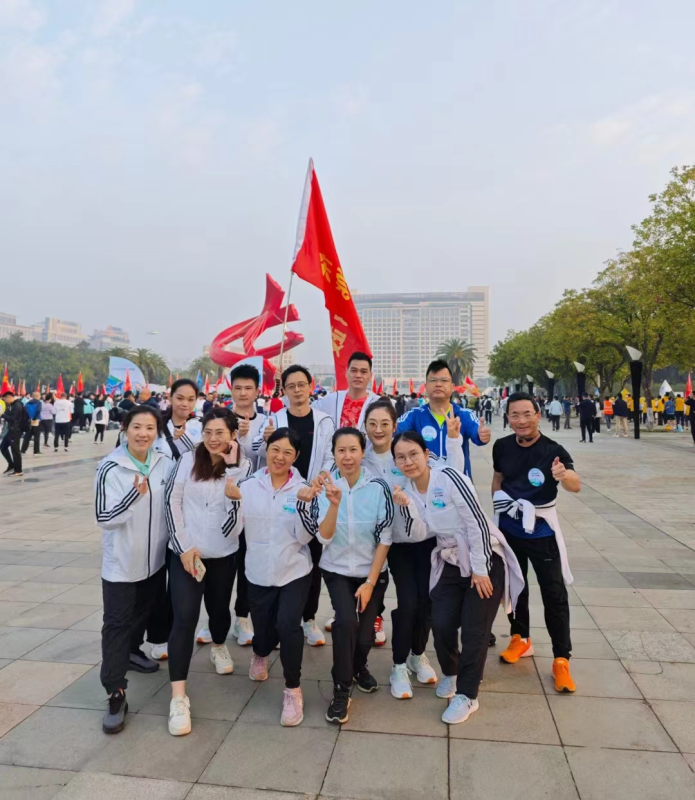 活動當天,現(xiàn)場旗幟飄揚、口號響亮。隨著發(fā)令槍響,機關(guān)分會從東莞市中心廣場北廣場出發(fā),沙田分會則從沙田大橋起跑點開跑。參加活動的員工個個精神抖擻、神采奕奕,浩浩蕩蕩的隊伍高舉飄揚的旗幟,邁開矯健的步伐,出發(fā)奔跑。