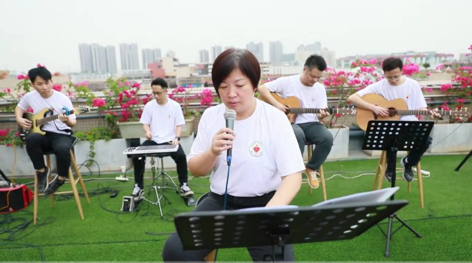 除了參與公司內(nèi)部的演出,樂隊還曾連續(xù)三年被佛山市總工會邀請,作為表演嘉賓到佛山市外來務(wù)工人員團(tuán)年晚宴上助興。“印象最深刻的是第一次演出,我們用的是電聲,有很多設(shè)備,光是調(diào)設(shè)備就忙得焦頭爛額。”劉玉表示,一首歌三分鐘,調(diào)音可能就要兩個小時,還好團(tuán)隊成員有豐富的經(jīng)驗,讓當(dāng)晚的演奏得到很好的呈現(xiàn)。