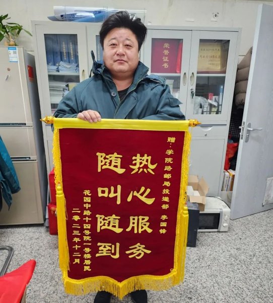 就在當天,用戶李女士來到學院路投遞部為投遞部主任李國峰送上印有“熱心服務 隨叫隨到”8個字的錦旗。前不久,李國峰接到李女士查詢報紙的來電,經過溝通,他了解到該用戶地址并不在學院路投遞范圍內。面對此種情況,他很爽快地答應用戶幫其尋找,并很快將報紙送到用戶家中。一個小小的舉動,讓用戶很是感動,于是李女士制作了錦旗并親自送到投遞部,向李 國峰表示感謝。