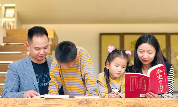 楊沛曉和妻子陸麗娟從小都熱愛讀書,工作后也一直保持著愛讀書的好習慣,閱讀也使他們相識相知相愛,組成家庭有了孩子后,他們更是積極延續良好的閱讀習慣,助力全民閱讀,從家庭做起、從娃娃抓起,做好兒童成長路上的引路人、守護人和筑夢人,當孩子咿呀學語時,他們會帶孩子參加讀書活動;當孩子上幼兒園時,他們就帶著孩子參加學校組織的“親子閱讀”分享會;當孩子不會識字時,他們就一字一句帶著孩子閱讀插圖故事;當孩子學會拼音后,他們就鼓勵孩子自己閱讀帶拼音的兒童讀物......擁有藏書1萬多冊的書房成了他們一家人的秘密基地,每天下班后全家人到書房選一本自己喜歡的書慢慢品讀,暢游于書海,在享受閱讀之樂時,構建和諧的親子關系,傳承優良家風。