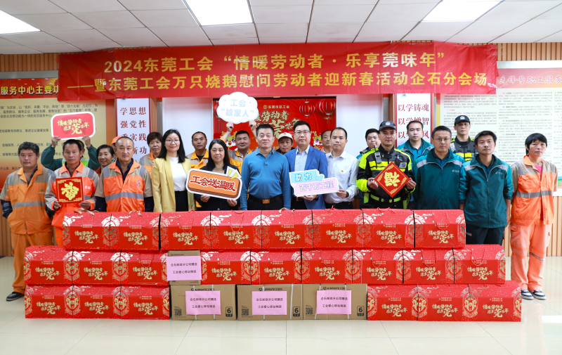 東莞市總工會為勞動代表們送上東莞特色燒鵝,感謝大家過去一年為東莞各方面建設付出的貢獻,讓廣大勞動者感受莞品、莞味新年。東莞郵政則為符合條件在莞過年、或節后返莞的務工人員贈送出1萬份溫暖禮包。伴隨著勞動者的歡聲笑語,活動現場充滿濃濃的“莞味”。