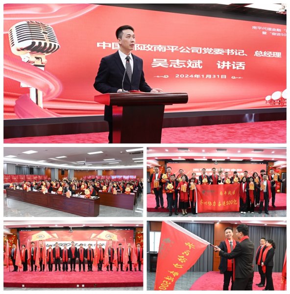 龍騰虎躍攀高峰。1月31日上午,南平市分公司舉辦“喜躍400億”表彰暨“奮進500億”啟動會。市分公司班子成員、各部門負責人、縣(市、區)分公司領導,受表彰網點主任、營銷精英參加。表彰會上,營銷精英、優秀網點、優秀單位代表武夷山度假區營業部李青妹、浦城仙樓營業所、邵武市分公司分別作了經驗分享。表彰了“開局之戰 奮進400億”主題營銷活動先進單位、網點和營銷精英;表彰了2023年度余額凈增6000萬以上的網點、300-400億余額凈增十強網點、凈增余額貢獻超15億元、10億元以及10億元以下增幅前兩名的優秀單位。市分公司領導分別為7個獲獎單位宣讀頒獎詞。