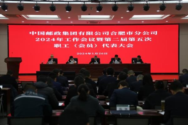 1月26日上午,合肥市分公司召開2024年工作會議暨二屆五次職工(會員)代表大會。會議本著精簡高效的原則,以現場和電視電話會議形式召開。會上,市分公司黨委書記、總經理李中勝作了題為《聚焦首位彰顯 聚力四個突破 在“皖美郵政”建設中展現省會郵政擔當作為》的工作報告。