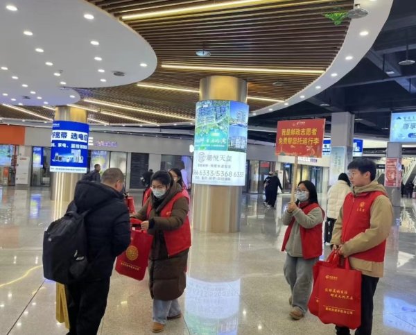 戶外“郵愛(ài)驛站”設(shè)咨詢服務(wù)區(qū)、能量補(bǔ)給區(qū)、禮包領(lǐng)取區(qū)。能量補(bǔ)給區(qū)為返鄉(xiāng)人員免費(fèi)提供食品、手機(jī)充電、熱飲用水等服務(wù);禮包領(lǐng)取區(qū)設(shè)置返鄉(xiāng)簽到抽獎(jiǎng)環(huán)節(jié),獎(jiǎng)品包括春聯(lián)、早教機(jī)、書(shū)包、抽紙等;咨詢服務(wù)區(qū)面向在外務(wù)工返鄉(xiāng)人員、返鄉(xiāng)大學(xué)生宣傳郵政存款六重好禮,兩輪大抽獎(jiǎng)等活動(dòng)及梁平就業(yè)創(chuàng)業(yè)政策。充分發(fā)揮志愿服務(wù)實(shí)踐育人作用,讓在外務(wù)工的返鄉(xiāng)人員、返鄉(xiāng)大學(xué)生第一時(shí)間感受家鄉(xiāng)人的問(wèn)候。